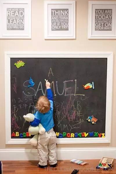 孩童時期正是想象力最旺盛的時候,何不給孩子一個發(fā)揮的空間呢?一面黑板墻正好可以滿足孩子的需求和想象~