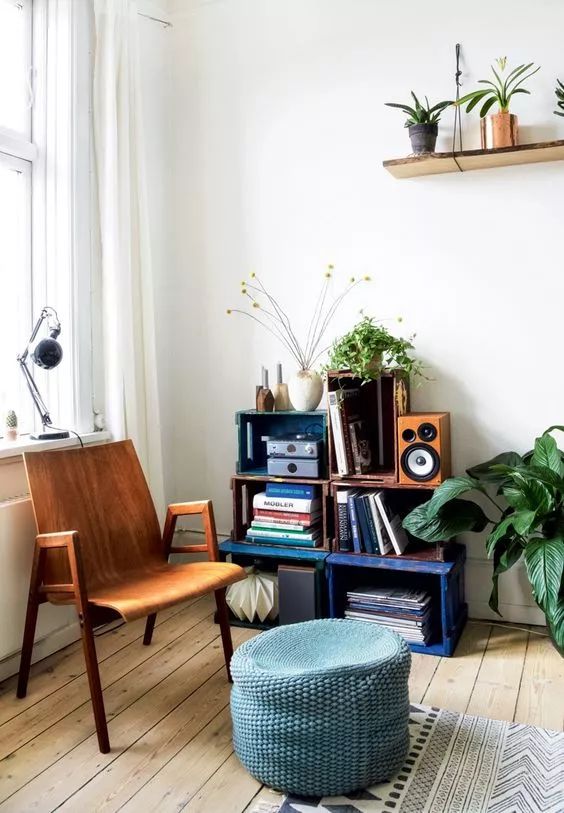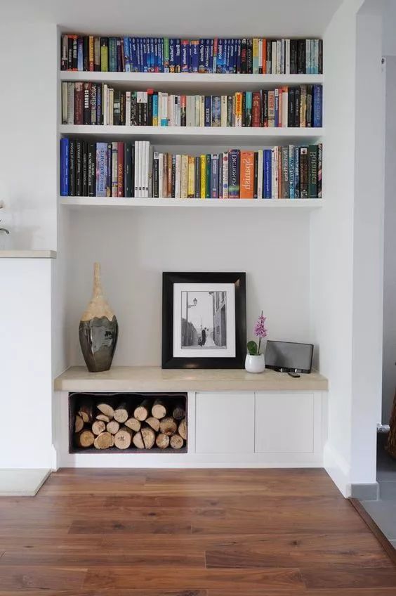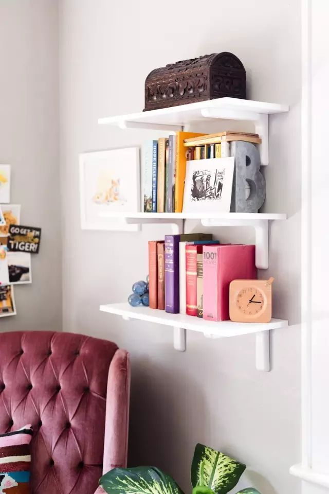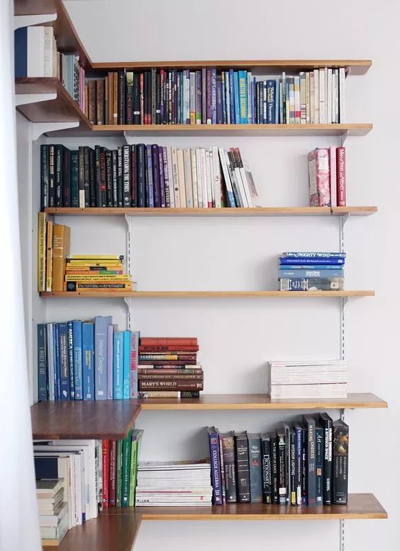 家里的書擠不下,角落改造起來!一面素雅的白墻,搭配色差感的書柜,零零落落的書擺放在一塊,也能成為具有裝飾性的一角。