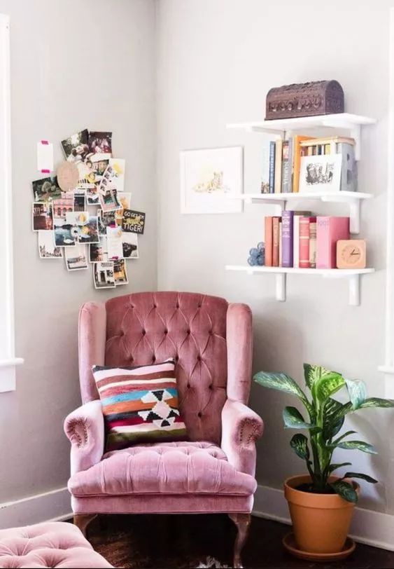 利用墻角設(shè)置一個讀書角,在周末的午后,坐在這樣的舒適的椅子上,閑適地翻開一本書,透過玻璃窗灑進(jìn)來的陽光,感受歲月靜好~