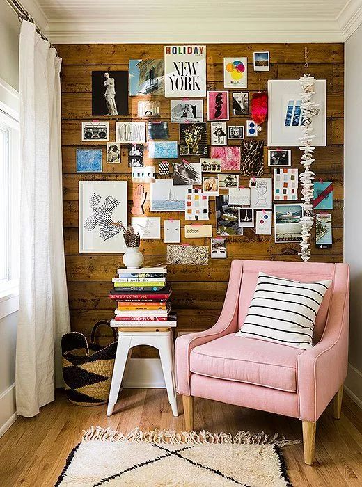 也可以放置一個小沙發(fā),在墻角的一邊布置成照片墻,展示與家人在一起的美好時刻。