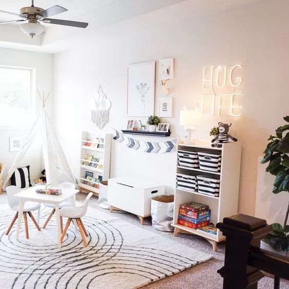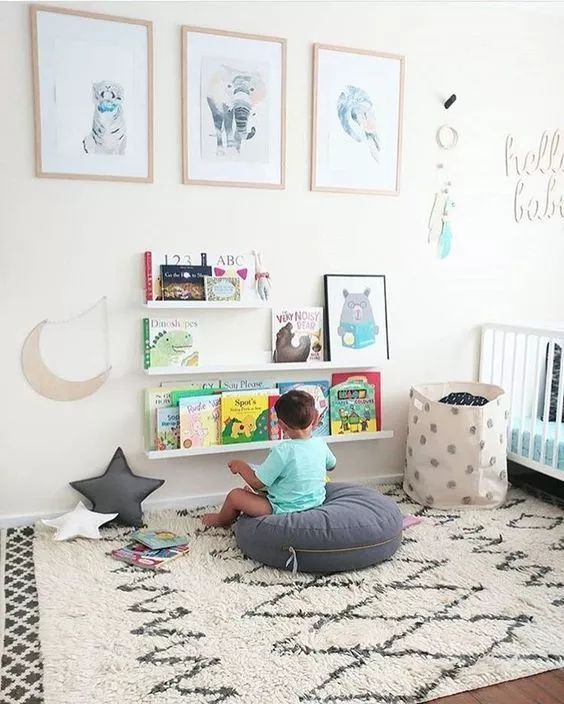 想培養(yǎng)小朋友熱愛閱讀的好習(xí)慣,言傳身教是最好的方式。旁邊墻面再布置幾個小書架,跟小朋友一起閱讀,一起體驗閱讀的樂趣。