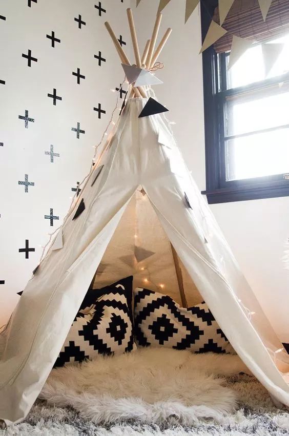 在客廳的角落搭個小帳篷,放塊毛毯和幾個抱枕,小朋友的玩耍小天地就有了。
