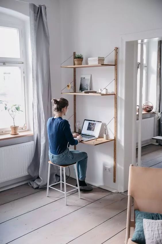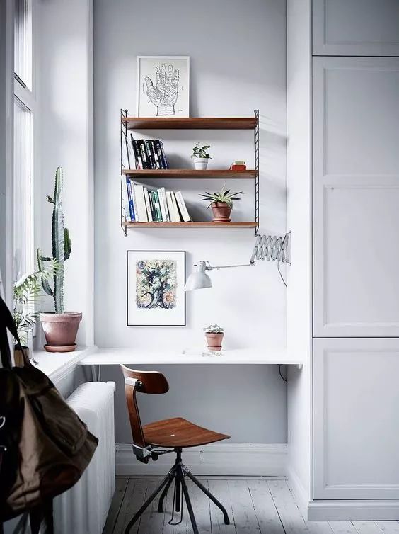 客廳房間選一面墻,不用對墻面做太多的整改,也不用多大的面積,能放得下一小張小辦公桌的位置就足夠了。