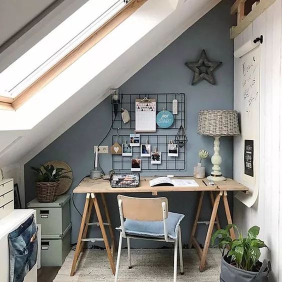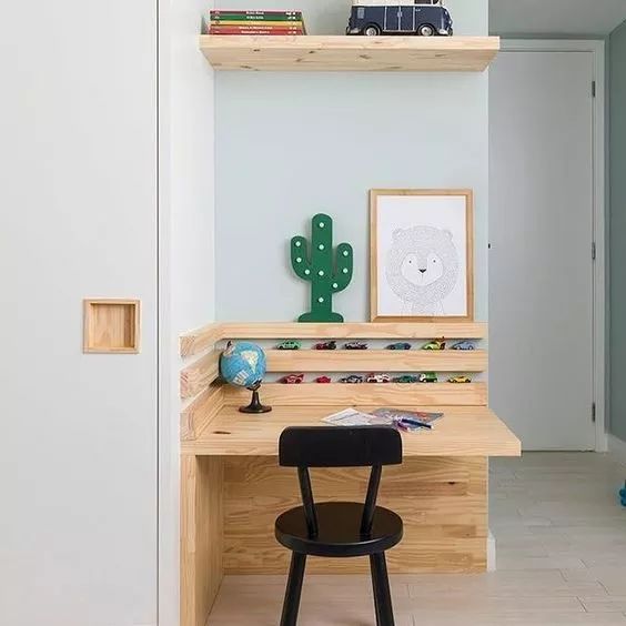 想要簡潔一些,桌子都不用,直接墻上釘塊板,有需要時當(dāng)做工作臺,不用時直接當(dāng)成收納板也不錯~
