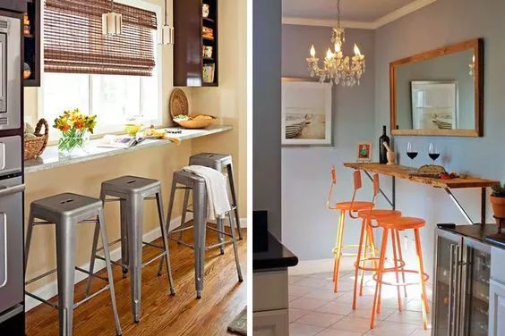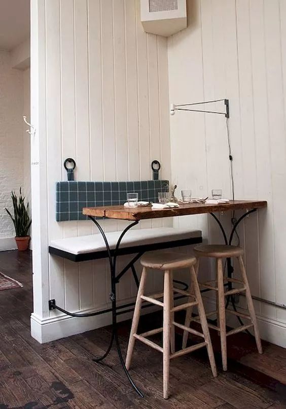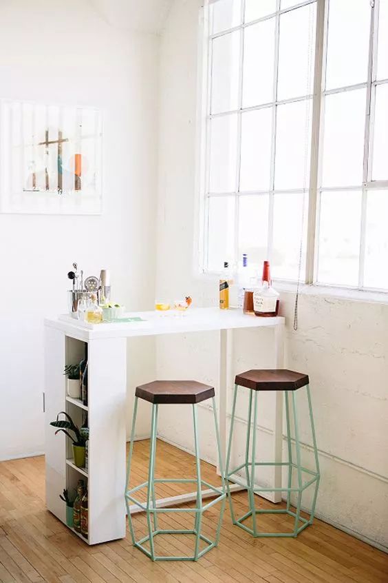 角落用長木板搭一個小吧臺,完全能和三兩朋友盡情的在家中聚餐了~