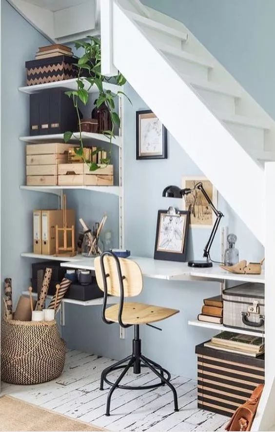 家里如果是復(fù)式房,樓梯底下的位置空著太浪費了。其實,樓梯間的位置也有大妙用,完全可以改造出“一間房”!