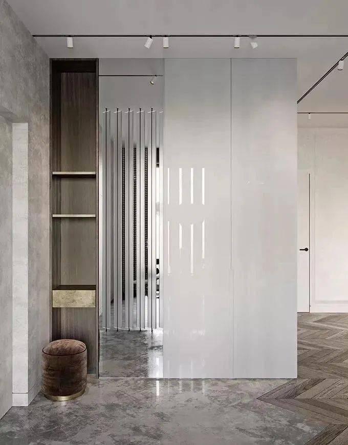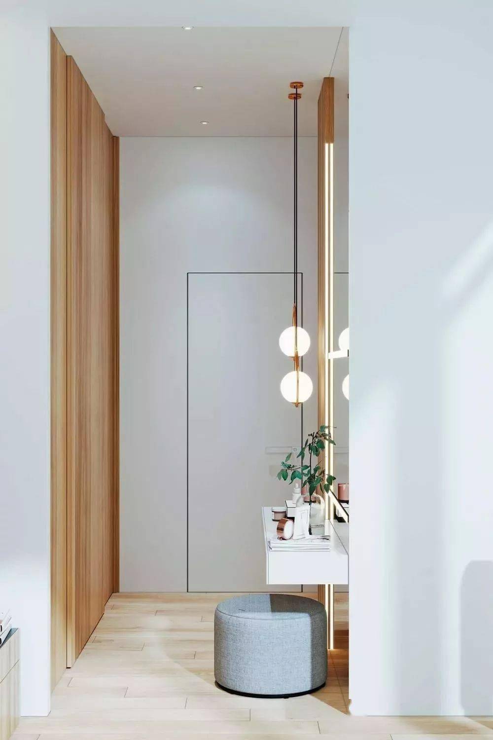所謂“花俏的玄關(guān)能營造豪華感”的說法是錯(cuò)誤的。整齊、有效的門廳收納才是關(guān)鍵。最好把鞋柜、衣帽架,以及室內(nèi)門等都定制成隱蔽式,一體化的設(shè)計(jì)形式,整體的設(shè)計(jì)效果,才最有高級感。