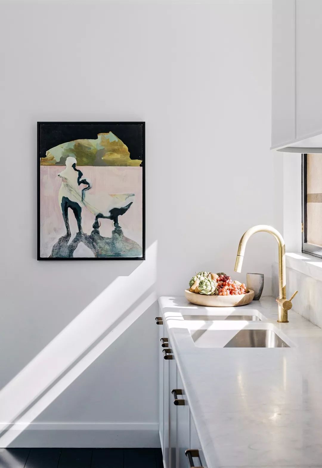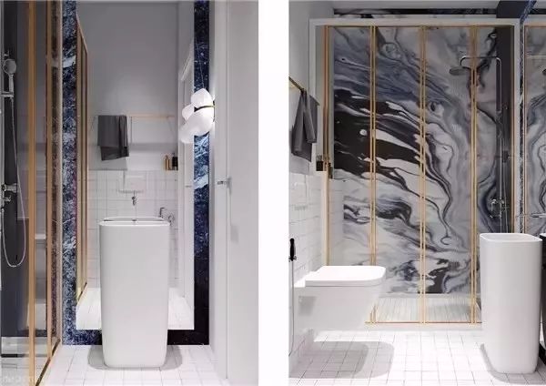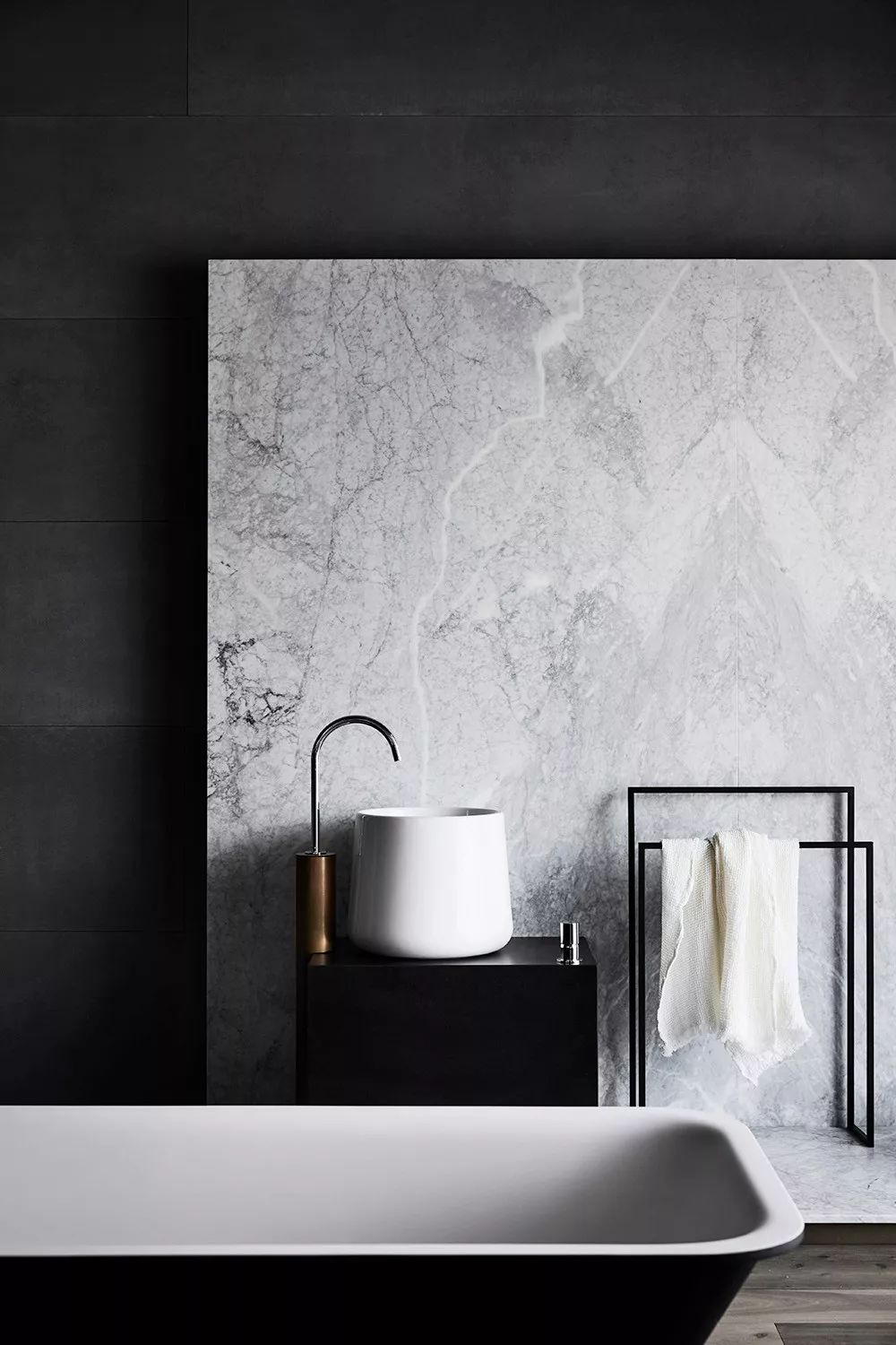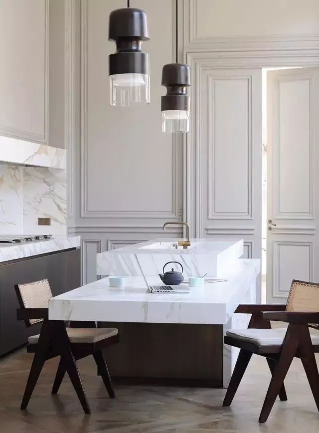 除了觀賞性佳,大理石也十分實用,用于廚房和衛(wèi)浴間更多一些。紋理相間的大理石,在白色地面上的點點肌理宛如流動的墨痕,渾然天成的紋路,讓大理石給空間一種自然的美感。