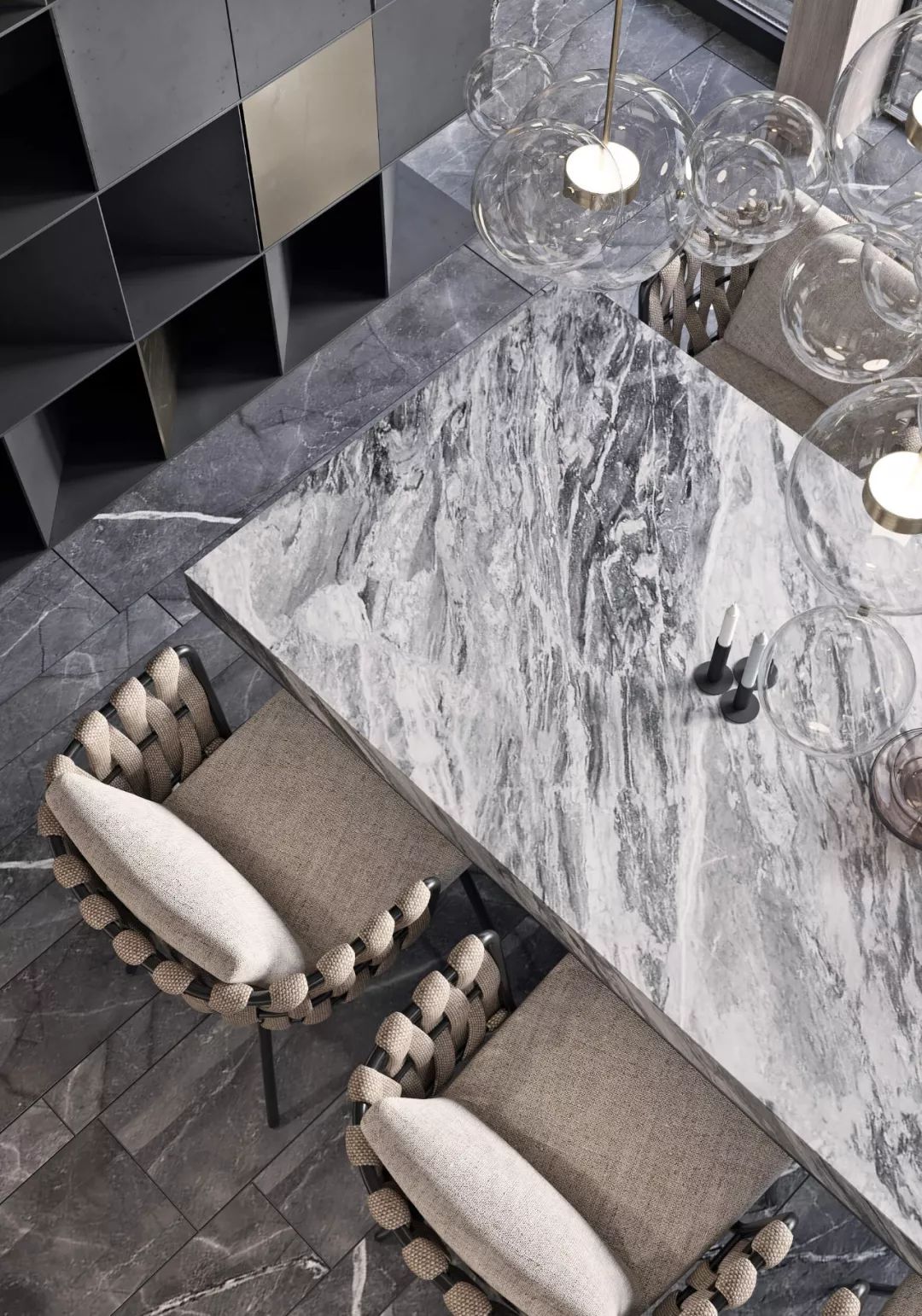 在熱和壓力下結(jié)晶,堅韌不拔的大理石地面,獨特而天然的紋理善于營造大氣的空間質(zhì)感,是很多豪宅的命定選材。