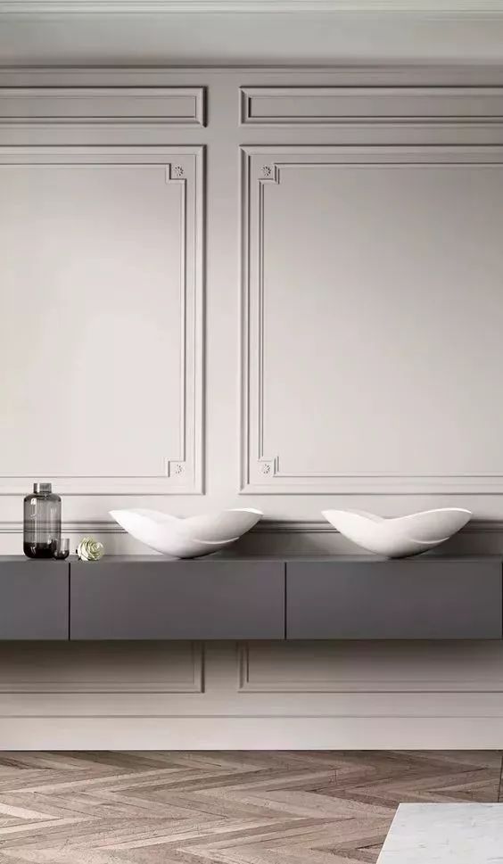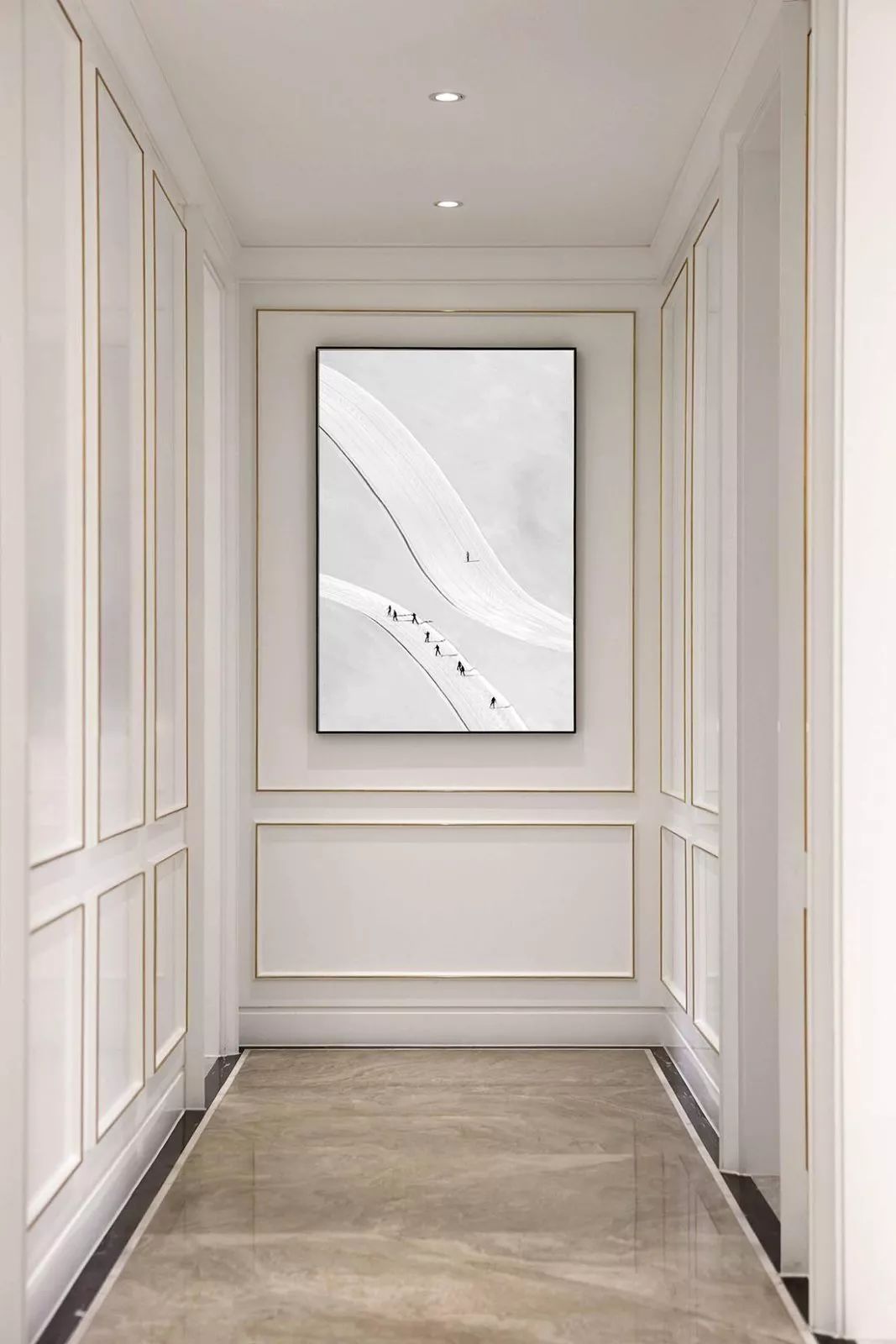 現(xiàn)如今,繁瑣而浮夸的石膏線墻面,已經(jīng)逐漸受到冷落,取而代之的是一種更為簡潔、利落的墻面裝飾手法——「細(xì)框線」,開始成為現(xiàn)代家裝的主流。
