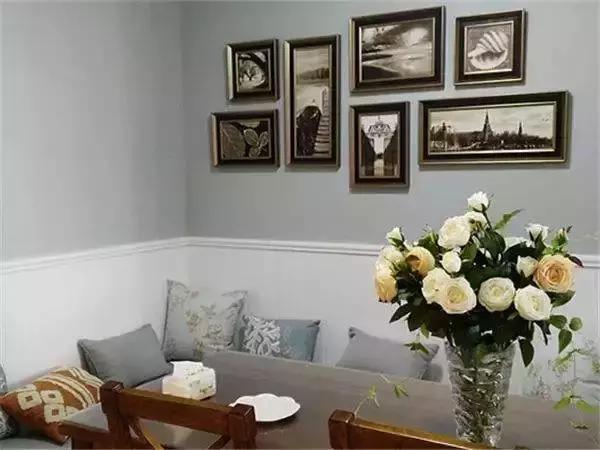 偶爾在雙拼色的墻面,打破規(guī)則的掛畫或者裝飾,讓空間更加生趣。(注意裝飾畫或者墻飾可以刻意壓線。)