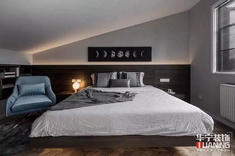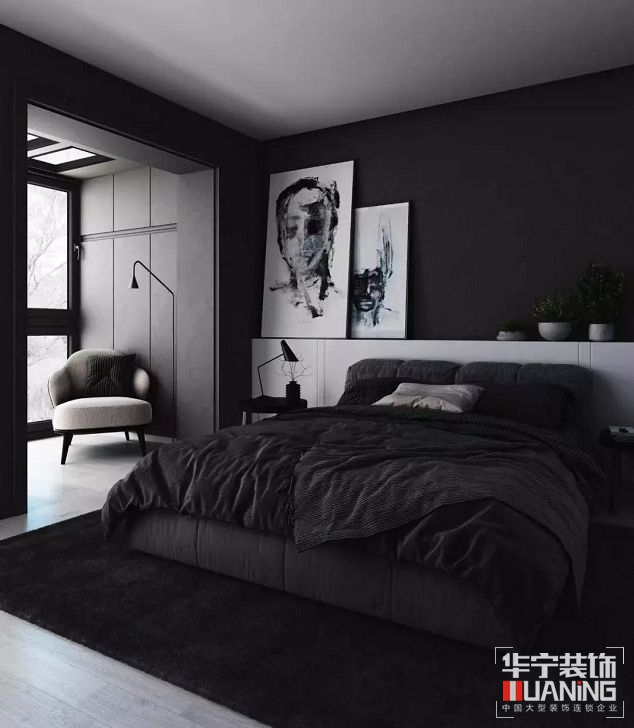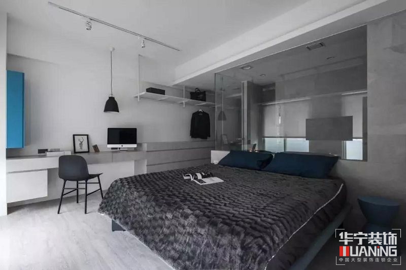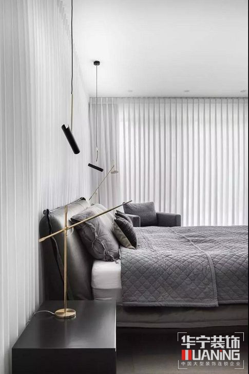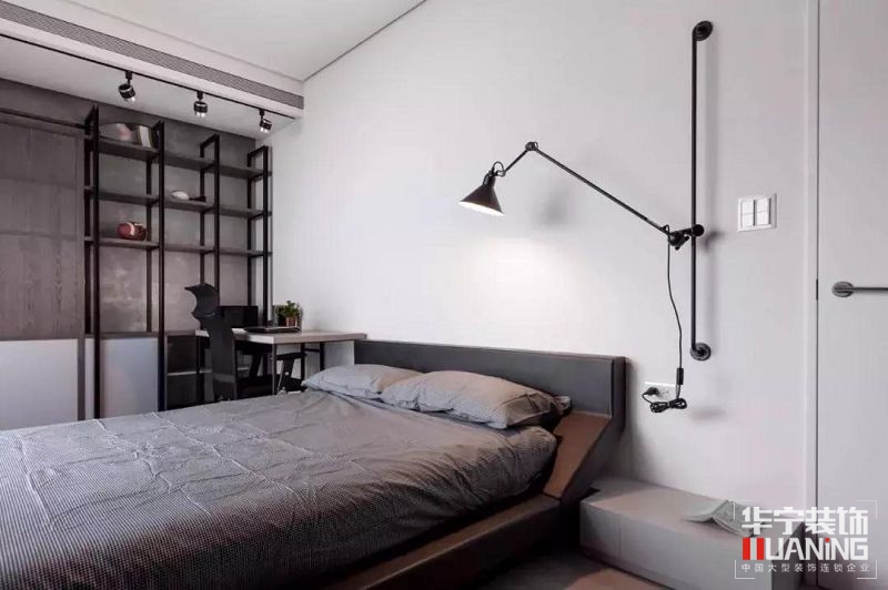 現(xiàn)代簡(jiǎn)約風(fēng)將男人臥室永恒的經(jīng)典色——黑白灰,詮釋地淋漓盡致,黑色的硬朗、陽(yáng)剛,搭配簡(jiǎn)單組合的配色,營(yíng)造出一種功能性之外的審美情境。