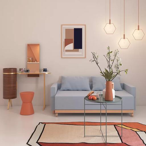 ▲ 家具陳設(shè)更有華貴感,暖黃+金色顯溫馨氣質(zhì)。