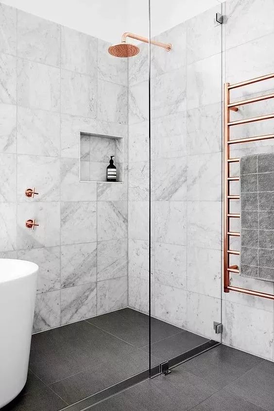 條型地漏面積大,排水快,不容易被頭發(fā)堵塞。而且一般條形地漏的排水坡度只需要1%,而普通地漏的坡度在1.5%-3%,所以從施工上來說,也簡單許多。