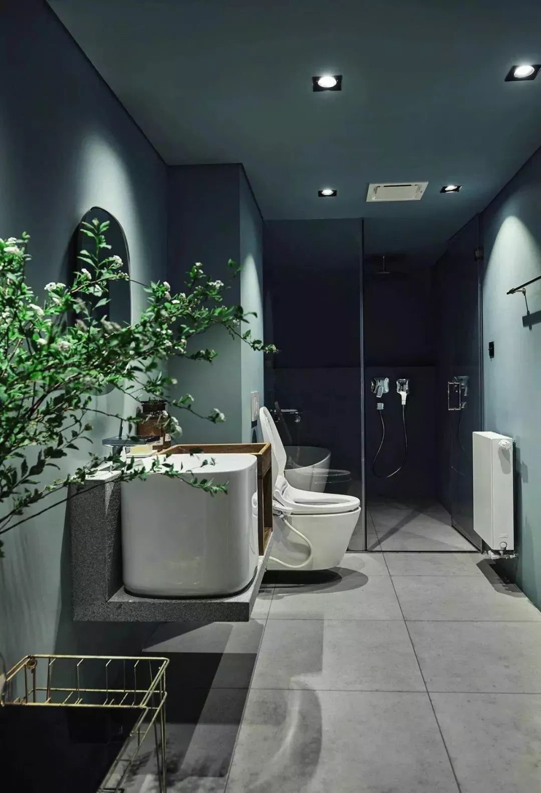 廚衛(wèi)防水,難道只能靠又厚又重的瓷磚?宅Sir之前介紹過的設(shè)計師,劉一汀恐怕要第一個說NO。她給屋主設(shè)計的衛(wèi)浴間,最特別之處,就在于舍棄了貼瓷磚防水的方式,墻面全部涂刷了英國Mylands的防水漆(包含淋浴濕區(qū)的墻面)。