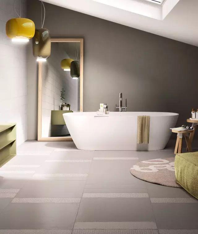如果喜歡簡(jiǎn)約的風(fēng)格,灰色地磚不失為一種很好的選擇~中性的顏色,既簡(jiǎn)潔大氣非常耐看,又耐臟實(shí)用。同樣也很百搭,搭配藍(lán)色可以讓空間更有冷靜的質(zhì)感,搭配白色讓空間更具小資情調(diào),黃銅色則更具復(fù)古韻味。