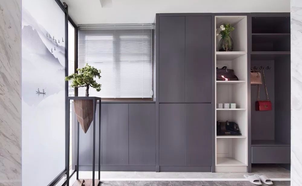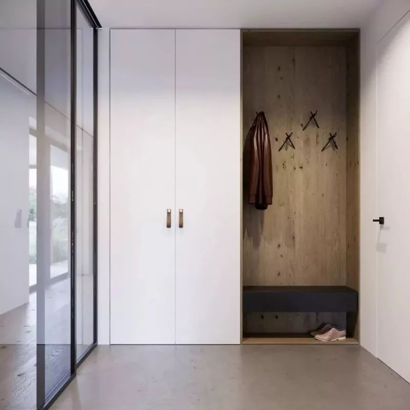 大多數(shù)玄關(guān)常見的設(shè)計都是做一個鞋柜,小編認(rèn)為這并不能完全利用好玄關(guān)空間,鞋柜衣柜一體式設(shè)計,則可以做到。