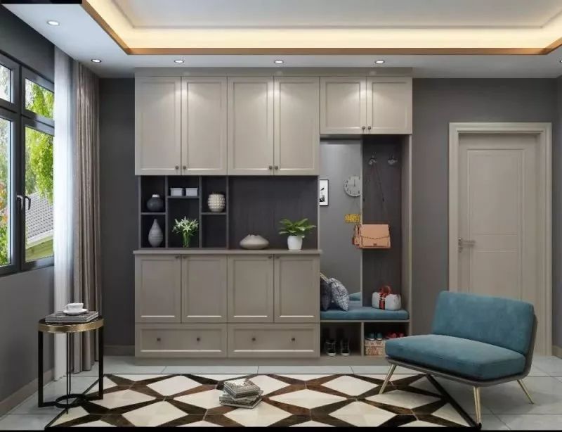 由于門廳是進(jìn)出房屋的必經(jīng)之地,在裝鞋柜和衣柜的時候要考慮進(jìn)出動線,過道不能做的太狹窄,寬度最好控制在1m以上,這樣我們進(jìn)出走動、換鞋也會方便很多。