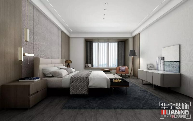 主臥以飄逸而儒雅的淺灰熔鑄輕奢的優(yōu)雅形制,賦予空間豐盈飽滿的美學(xué)質(zhì)感。以簡(jiǎn)練線條和純粹色彩恰到好處的糅合,去營(yíng)造與主人相匹配的空間,并用木質(zhì)地板代替大理石,讓空間氣質(zhì)更為溫潤(rùn)。