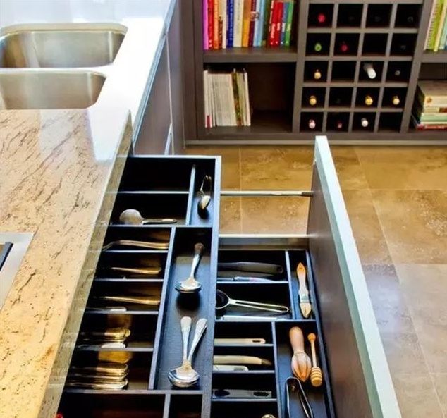 很多業(yè)主在選擇抽屜的時候一直考慮到底選擇幾個合適呢?小編建議大家抽屜我們最少選擇一組(兩小一大),因為廚房小東西會更多一些,做開門的廚柜一般存放一些大件使用。