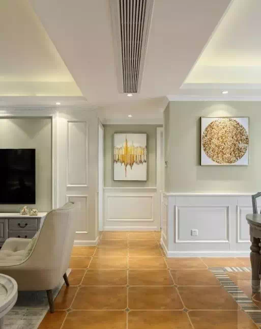 米白色仿古磚,在美式風(fēng)格的裝修里常見,搭配象牙色是最常見搭配。