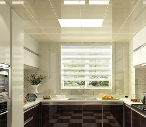 吊頂顏色的選擇應(yīng)該與廚衛(wèi)空間的整體色系向協(xié)調(diào),并且吊頂?shù)呐渖詈门c廚衛(wèi)墻壁的色系相同,如果墻壁是暖色調(diào),那么吊頂也要采用暖色調(diào)的色系,反之亦然。