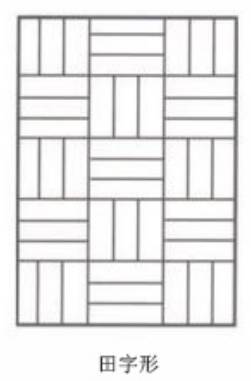 田字鋪貼法就是將幾塊同樣長(zhǎng)度的長(zhǎng)方形木板拼接成正方形,然后橫豎更替,做成一個(gè)田字格的造型。