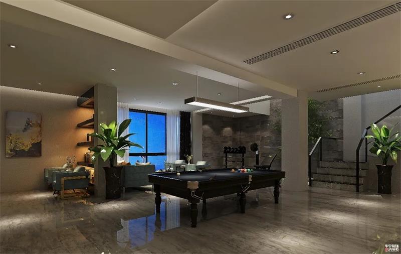 負(fù)一樓是封閉空間,設(shè)計(jì)師特別設(shè)計(jì)兩道采光天井,并做循環(huán)水池與墻面綠植,引入光線的同時(shí)凈化空氣,打造出一個(gè)健康舒適的運(yùn)動休閑空間。通過色彩的協(xié)調(diào)、材質(zhì)的運(yùn)用及燈光的渲染,整體營造出大氣簡約的現(xiàn)代空間氛圍。