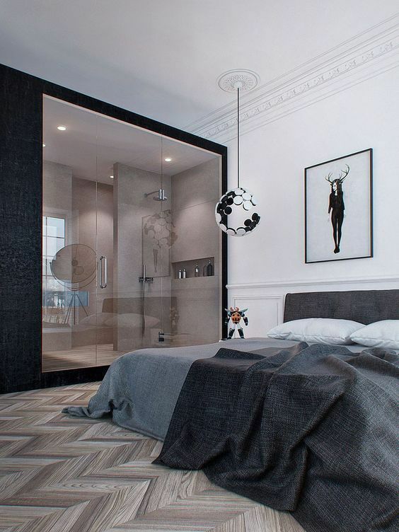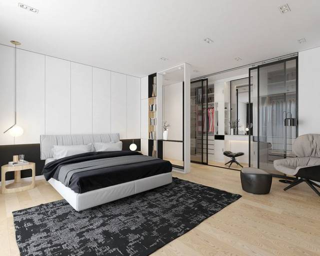 用黑框玻璃窗來(lái)阻斷衛(wèi)生間與臥室的界限,不僅可以解決暗衛(wèi)本身存在的采光問(wèn)題,而且視覺(jué)上更具時(shí)尚效果,令整個(gè)臥室的質(zhì)感瞬間提升。