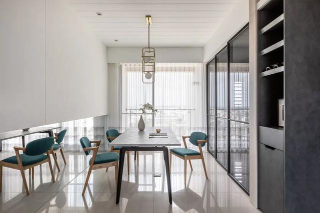 做成開(kāi)放式廚房,餐廚結(jié)合的設(shè)計(jì)在動(dòng)線上也縮短了很多,做好菜端上桌只要一個(gè)轉(zhuǎn)身就可以完成了。