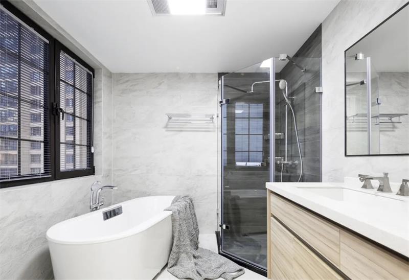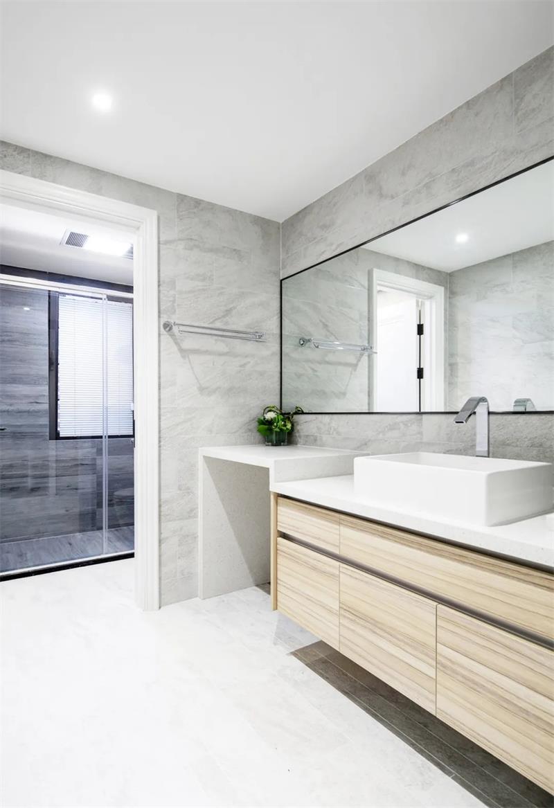 白色是永恒的主題,同色不同材質(zhì)的白色將空間體感得以展現(xiàn)。無論是方正的空間,亦或是異性的空間,設計師總能合理的設計將人性化體驗完美詮釋。以白色為統(tǒng)一色調(diào)的衛(wèi)生間,石膏、石材、木質(zhì)、金屬等不同材質(zhì)的家具以自己的設計線條和質(zhì)感體現(xiàn)著相同色彩的不同面貌,空間的層次更具立體感。