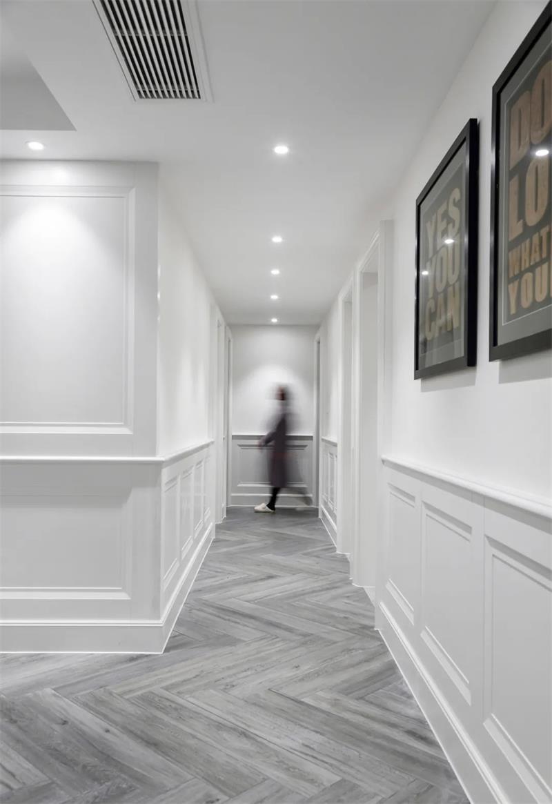 一個人的家,是他所有經(jīng)歷、閱歷、眼界所形成的審美和趣味的結晶。對本案業(yè)主而言,家是內(nèi)心的獨白與精神棲息地。在這一方200㎡的偌大空間,設計師以【素白】為主色調(diào), 輔以淺藍、卡其調(diào)劑,材質(zhì)上運用純白色護墻板和白色涂料,通過營造靜雅的生活氛圍,將空間打造成具有認同感的精神領地。
