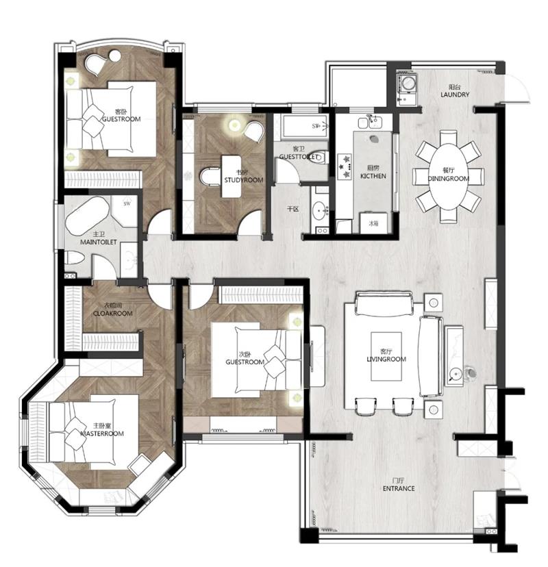 蕓蕓眾生,每一個人的內(nèi)心都蘊藏著別人不曾發(fā)現(xiàn)的自己,只有真正安靜下來的時候,人才會釋放天性,成為真正的自己。以色彩的力量凝練內(nèi)心,讓所愛之物在空間中自然生長,彼此理解與陪伴,這正是設計師對本案業(yè)主的理解與表達。