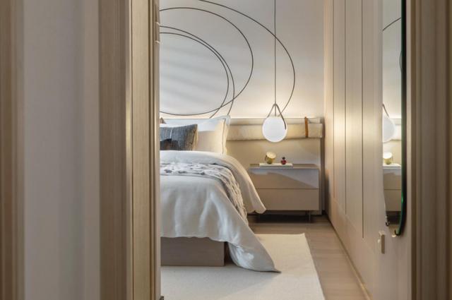 從地面到墻面,再到天花,顏色依次漸變的空間感,令人非常和諧自然,也不會(huì)顯得頭重腳輕。
