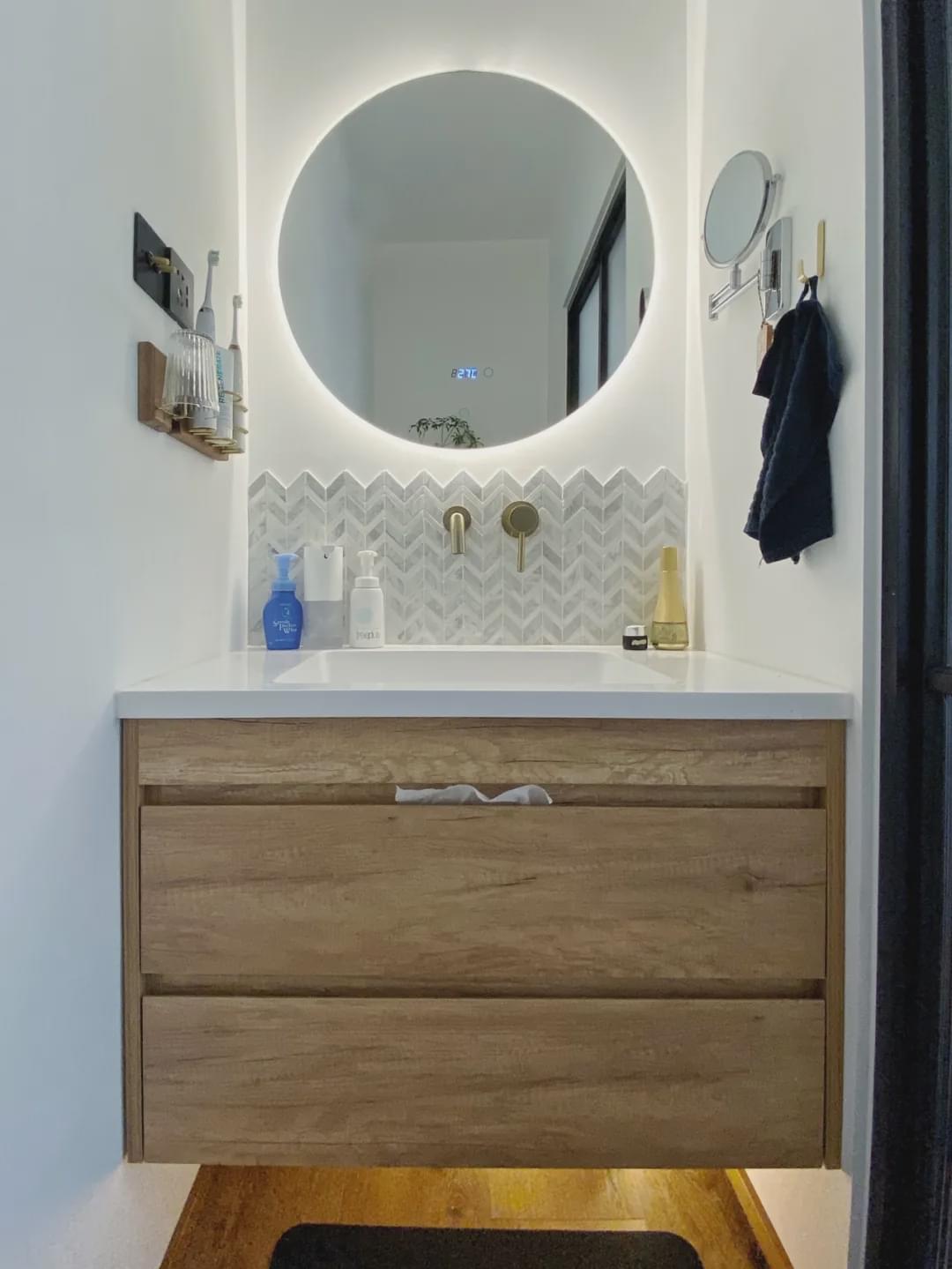 如果都是上班族起床時間集中,位置有120cm以上的,可以考慮做個雙盆浴室柜提高家庭的效率。