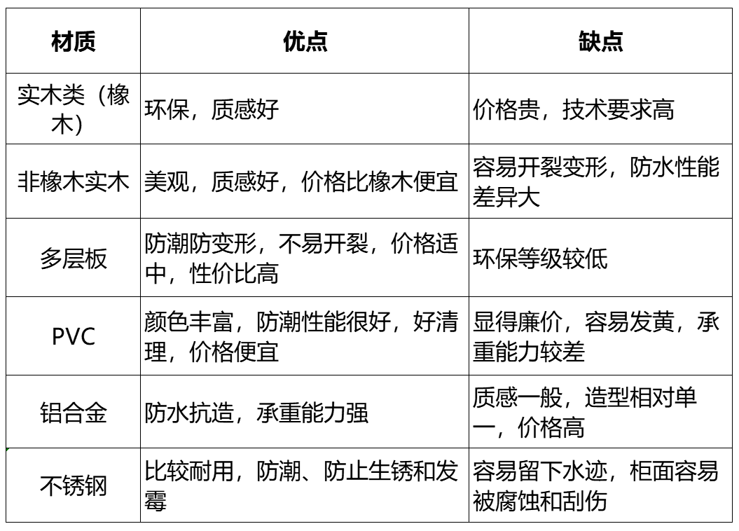 目前主流浴柜柜體的材質(zhì)有實木、PVC、不銹鋼三大類,下面是一些材質(zhì)的對比分析: