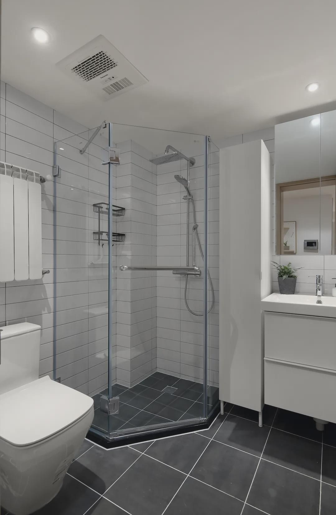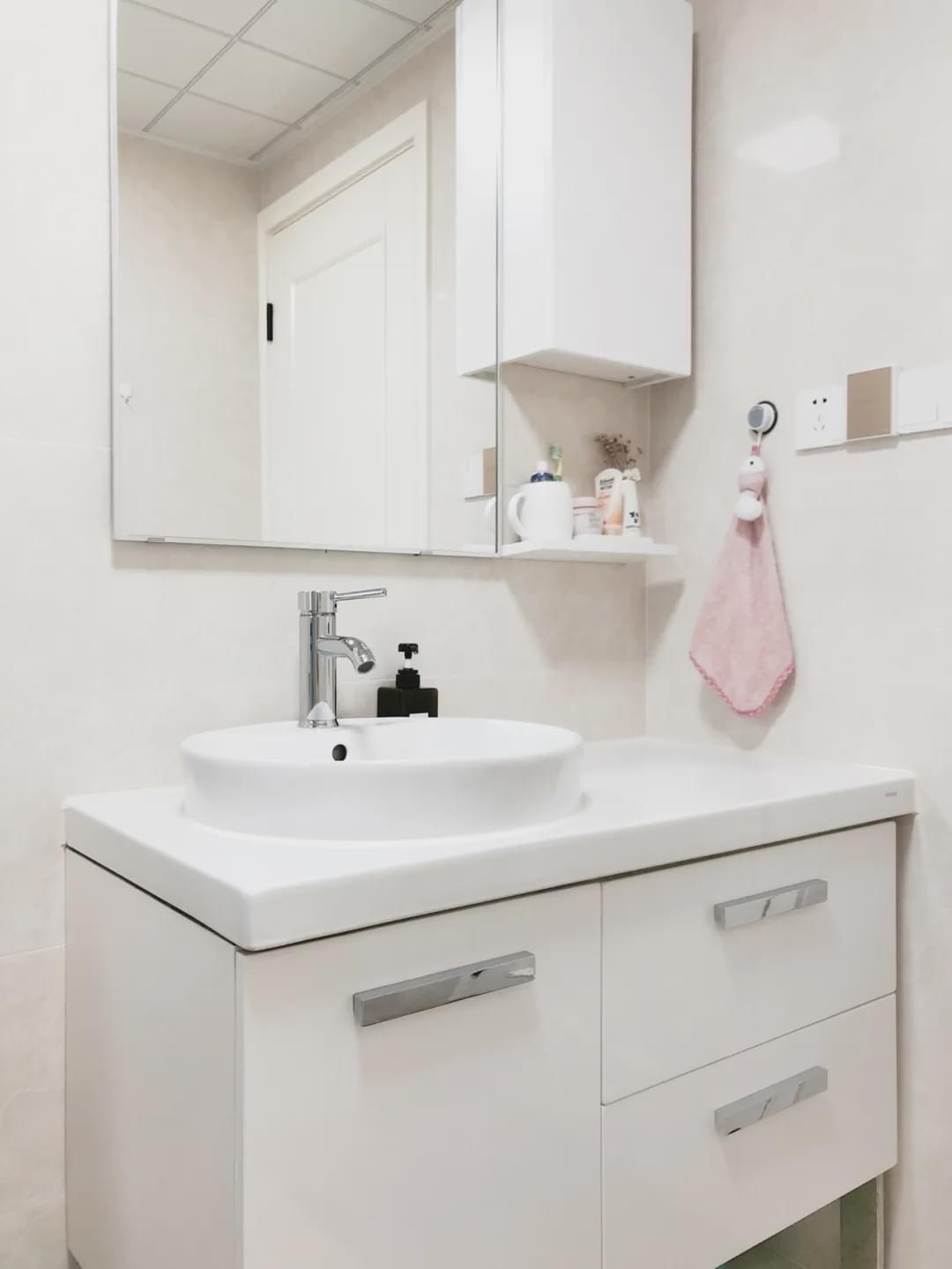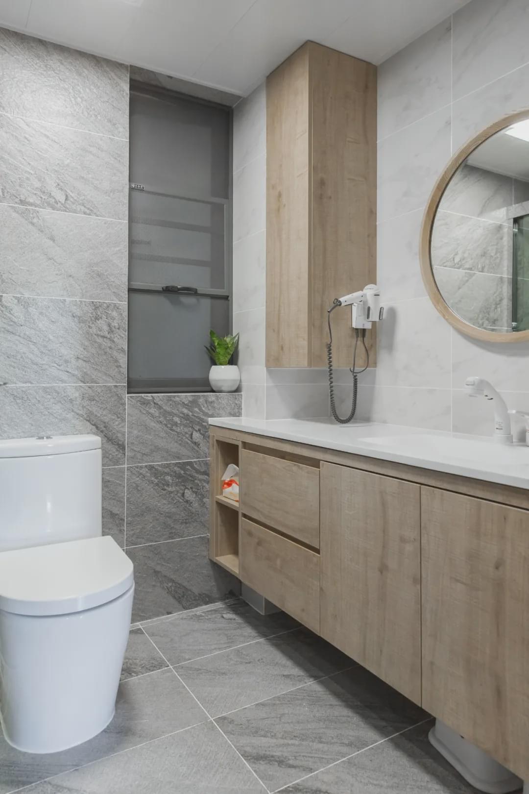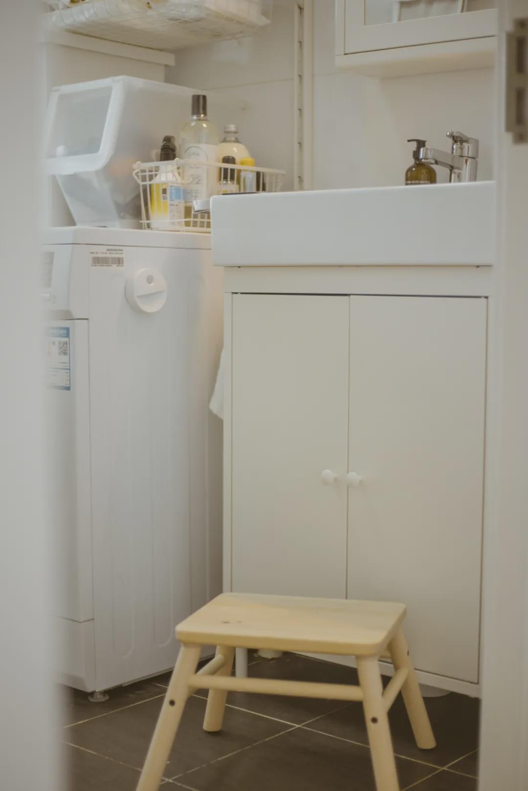 如果選浴室高柜,可以做成嵌入式的,更加清爽簡潔。