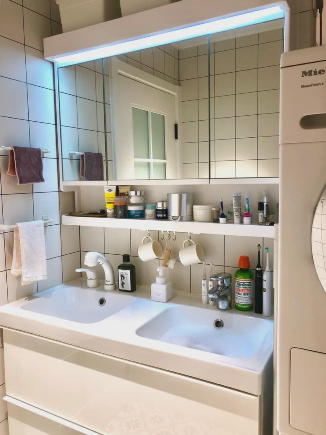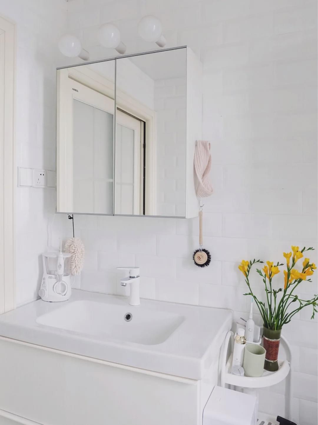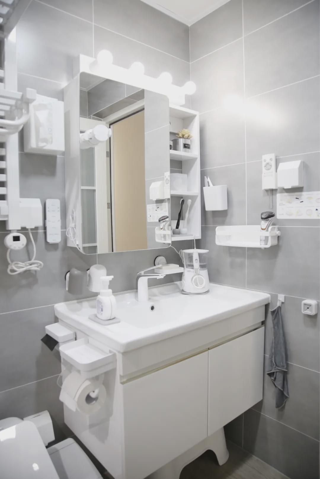 如果家里儲物空間少,或者沒有梳妝臺,那鏡柜還是有必要的。推薦半開放式鏡柜,常用的可以放出來,不常用的可以放進去,減少了開門的次數(shù),也更方便。南方的朋友還可以選帶除霧功能的鏡柜,回南天的時候不要太好用。