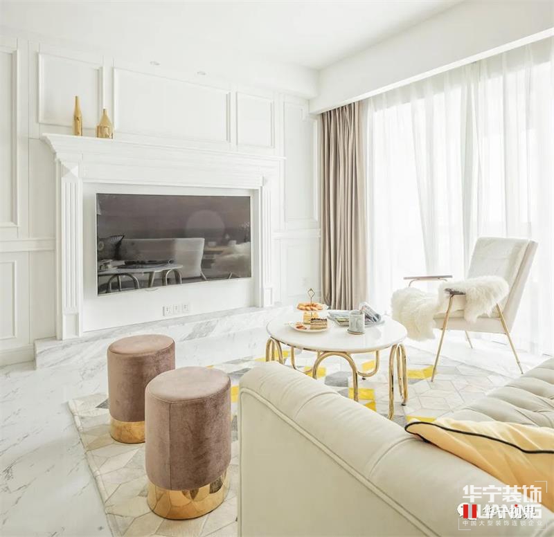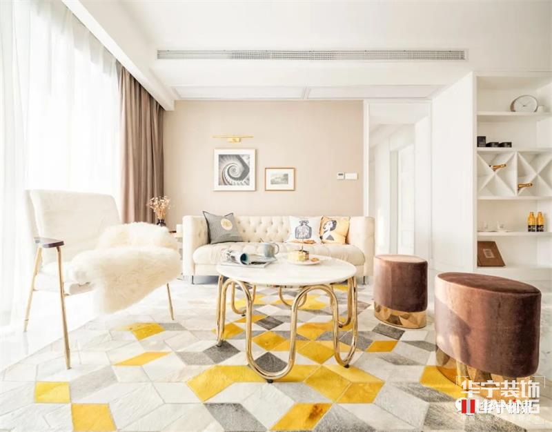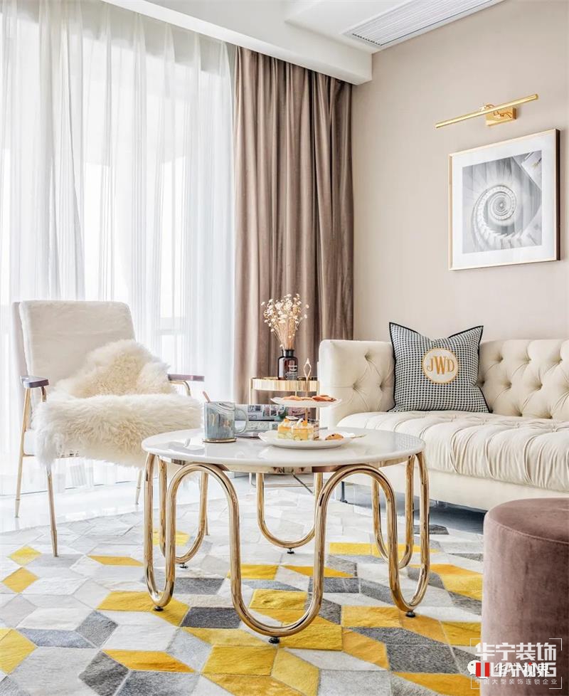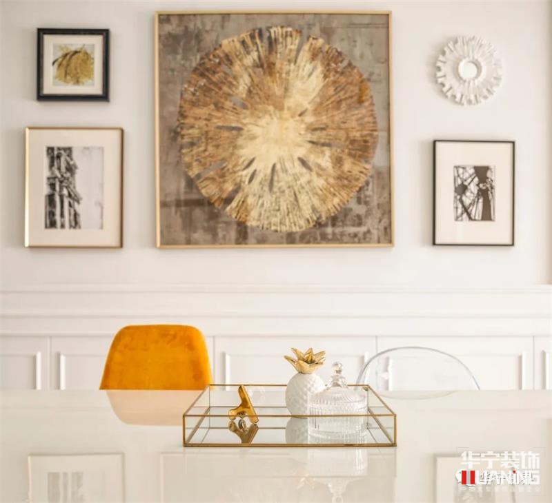 細節(jié)是最能窺見一個人的生活品味與精神追求??蛷d在空間上保持格局的方正與通透,卻在材質(zhì)、色彩與形狀上十分講究,以藝術(shù)化的視角營造出時尚高雅的寓居空間。