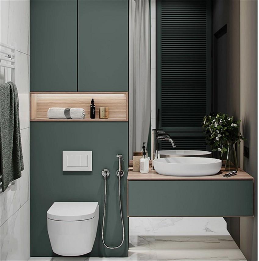 當(dāng)然更加高階的人士,現(xiàn)在的衛(wèi)生間都玩兒起了顏色,比如典雅的綠色,整體的綠色調(diào)并不會(huì)讓你感到難受,綠色+白色的搭配,更是能給人一種沉穩(wěn)的質(zhì)感。