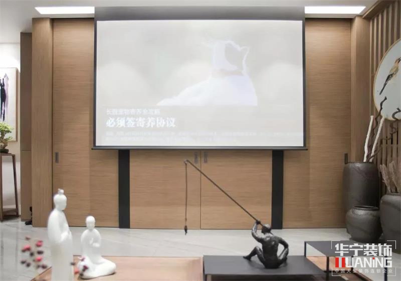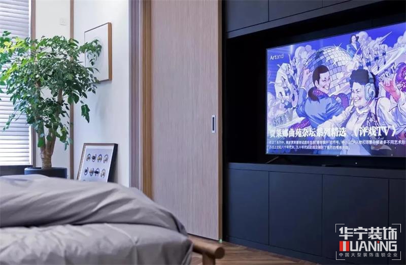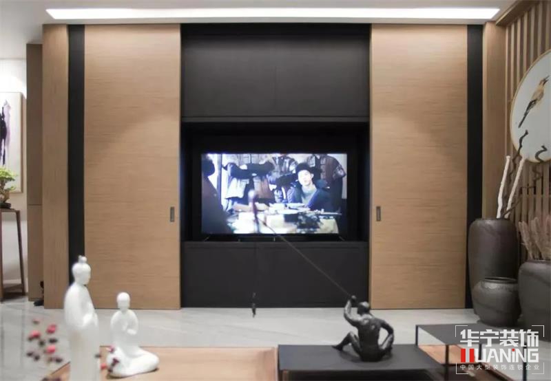 客廳電視背景墻不是呆板的按部就班,設(shè)計師打破傳統(tǒng)的設(shè)計法,用簡潔的推拉門代替背景墻,電視隱藏其中,上方凹槽燈帶暗藏投影幕布,既節(jié)約了空間又增強(qiáng)實用性,隱藏法讓整個空間更加簡潔美觀,這才是設(shè)計真正的價值與魅力。