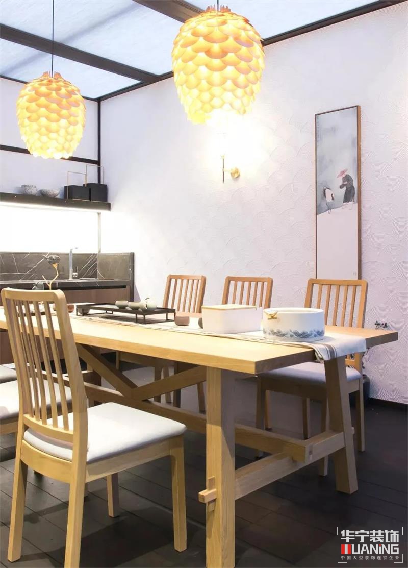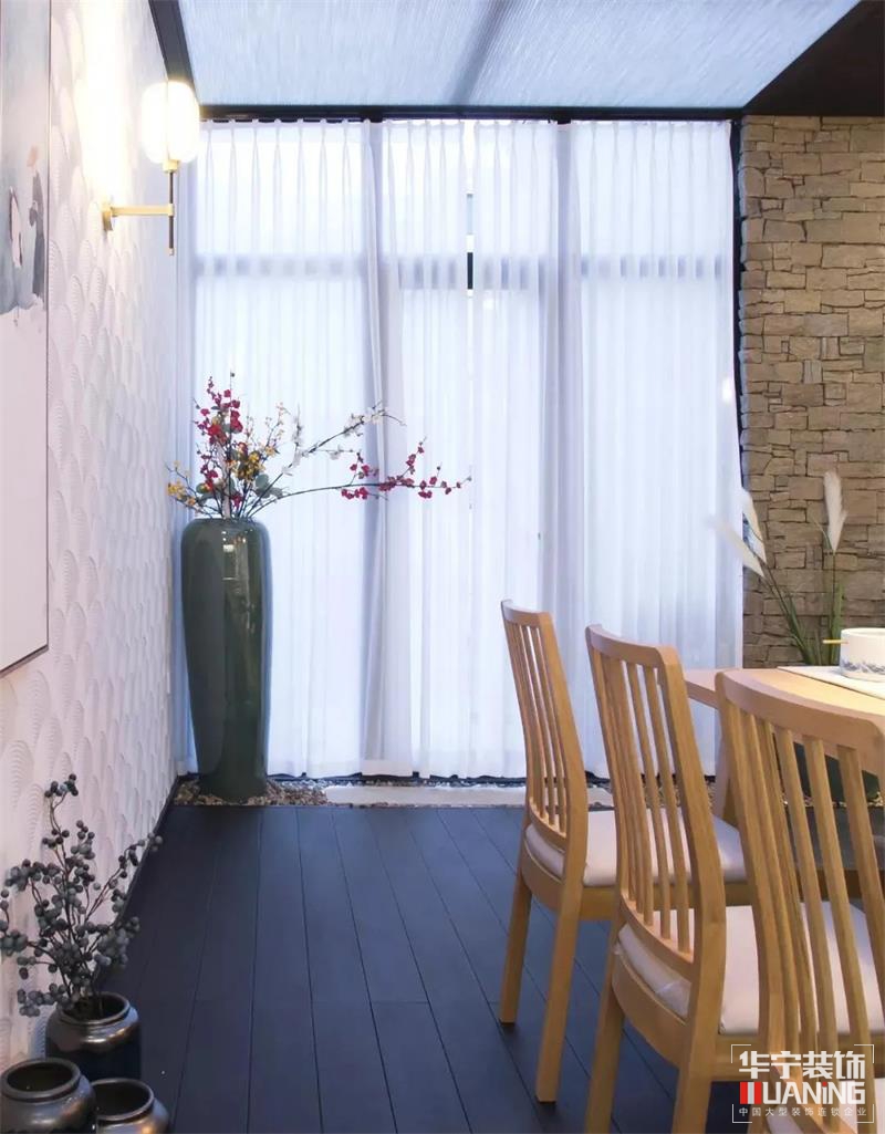 玻璃推拉門劃分廚房與陽光房,保證空間功能的獨(dú)立性。仿古磚墻面是整體氣質(zhì)的延續(xù),天花以面板燈模仿自然天幕,陽光房更具意境,視覺更加明亮。光線影影綽綽地散透著蘊(yùn)暈,畫中有畫,景中有景,帶給一家人舒適靜謐的安享空間。