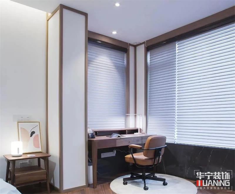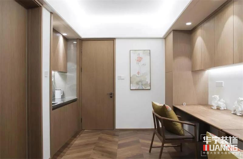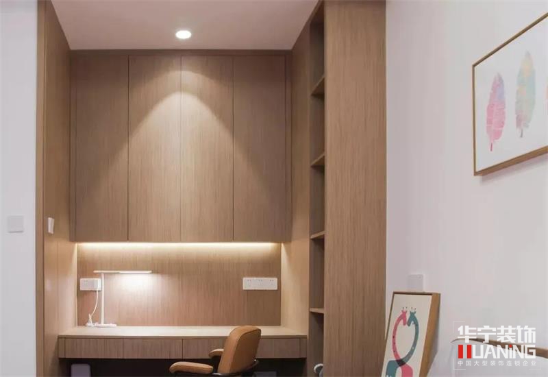 大面積實木鋪就的書房凝結(jié)東方美學(xué)精髓的悠遠(yuǎn)氣韻,尋得清幽之處,讓思緒伴著墨香盡情揮灑。到頂書柜定制設(shè)計,無主燈設(shè)計讓整個空間更加簡約溫暖。