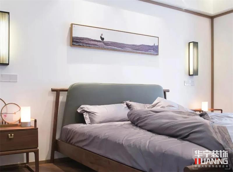 三樓是主人臥室,一切陳設(shè)落得簡凝妥當(dāng)。整體素雅色調(diào),充分尊重空間的排列,突出功能價值。中式對稱式設(shè)計,山水畫、壁燈、擺件意蘊(yùn)深遠(yuǎn),以含蓄的現(xiàn)代方式詮釋東方意境,展現(xiàn)出主人高遠(yuǎn)深邃的精神世界。