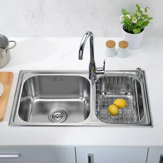 如果選擇雙槽,但兩個槽大小一致的話,往往會導(dǎo)致每個水槽的長度都不夠。無論是洗炒鍋、砧板,還是大件蔬菜,都沒辦法將它們完全塞進(jìn)水槽。導(dǎo)致清洗的時候很容易就濺一身水。