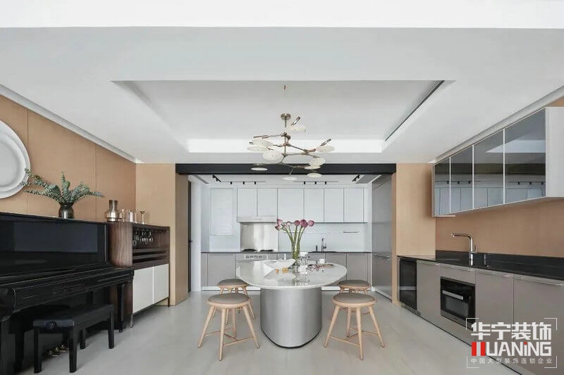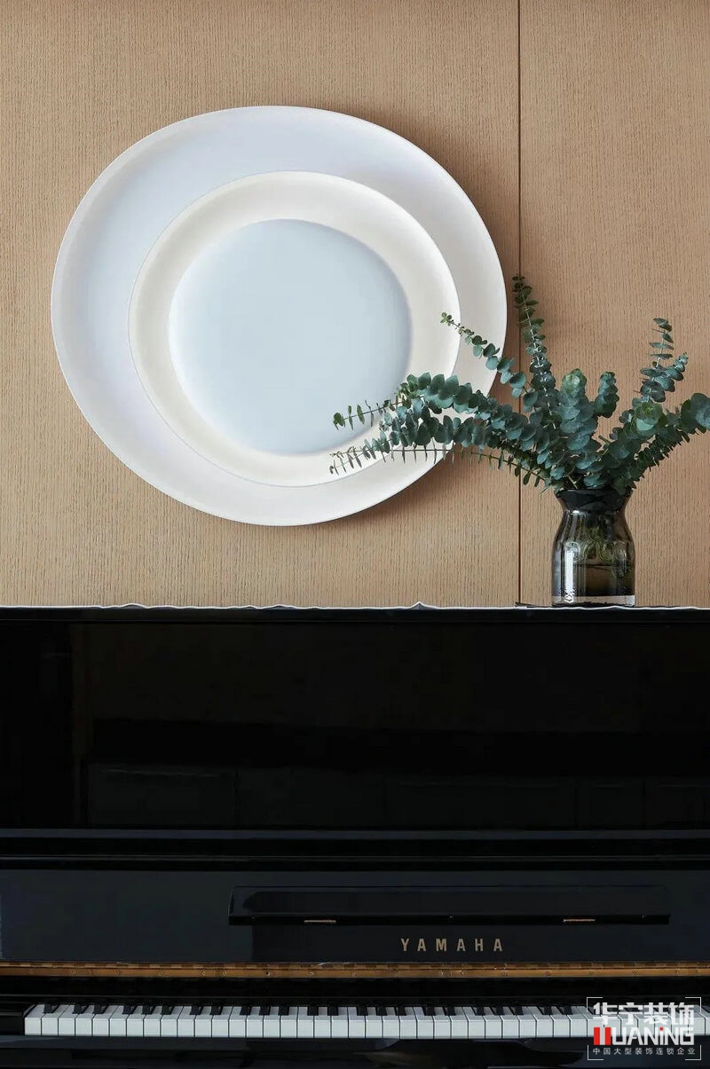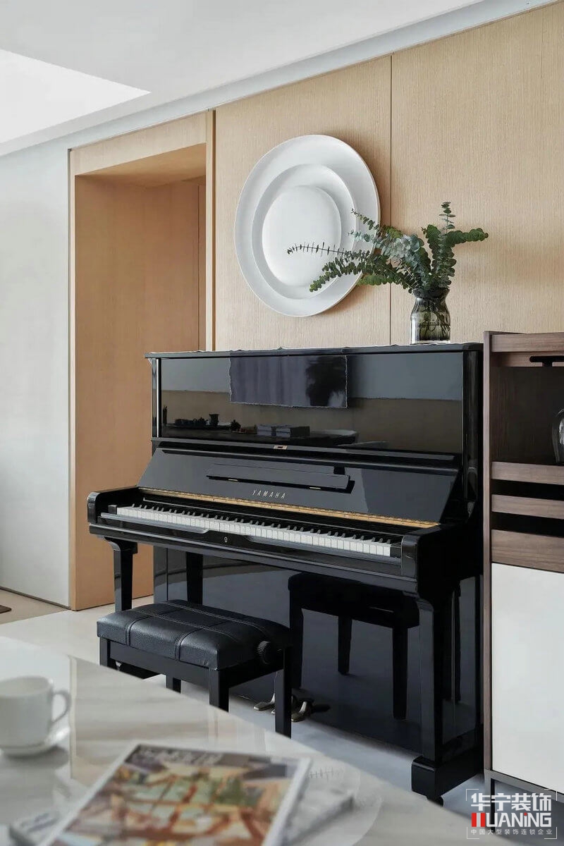 設(shè)計(jì)更多地審視空間的互動(dòng)性和人的參與感時(shí),便有了家的人情味。開放式廚餐廳布局增加更多互動(dòng)的場景感,女兒心愛的鋼琴與簡雅實(shí)用的酒柜倚墻而設(shè),每一寸空間利用到極致,藝術(shù)與生活在自然無聲中完美交融。