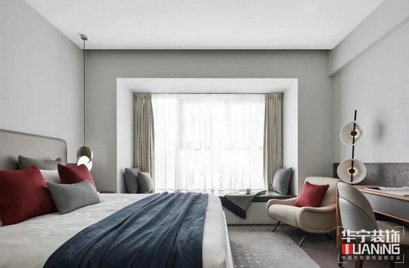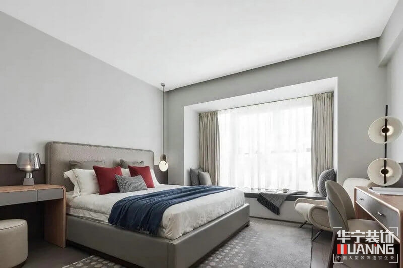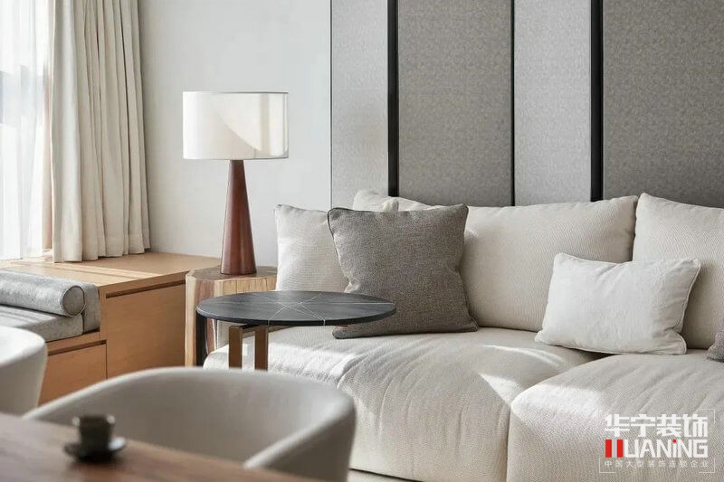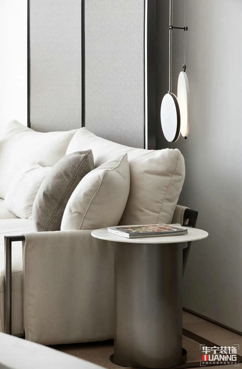 灰色中性色是主色調(diào),木質(zhì)色與灰藍(lán)色適當(dāng)填充,配以棉麻布藝、實(shí)木材質(zhì)的家具和裝飾增添層次感,不同材質(zhì)與質(zhì)感的重疊與碰撞,營造出大氣沉穩(wěn)的現(xiàn)代氣質(zhì)與靜謐舒適空間。