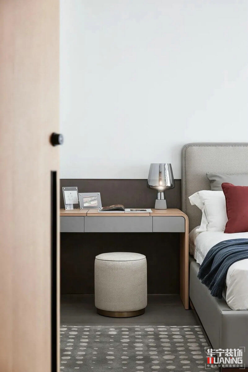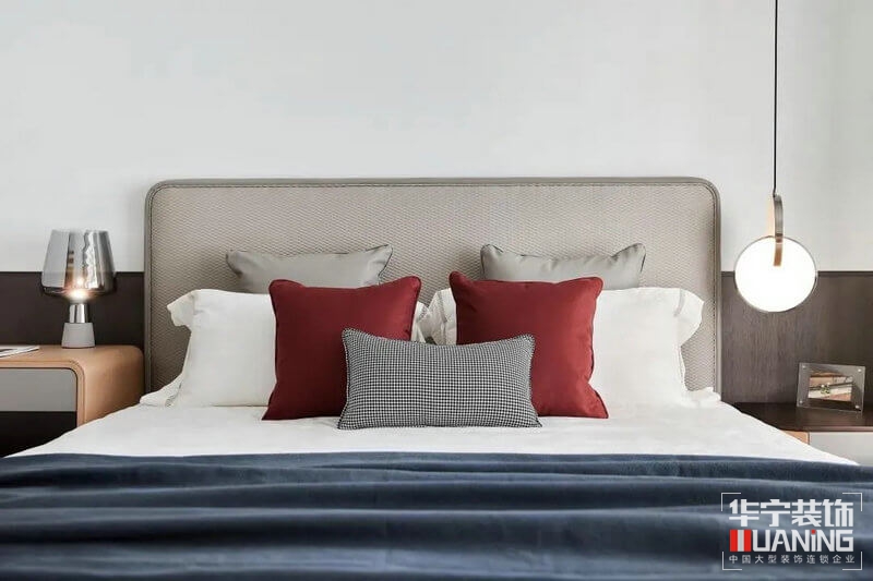 從審美品位到材質(zhì)把控、風(fēng)格定位的選擇上,設(shè)計(jì)師徐靜始終在不斷探求更加美好的設(shè)計(jì)呈現(xiàn)。光影隨意灑落于床邊,與精心調(diào)配的典雅藍(lán)和復(fù)古紅搭配出簡寧質(zhì)感。適度留白給予居者更多的想象,在未來的日子里,用愛與品位去慢慢填滿。