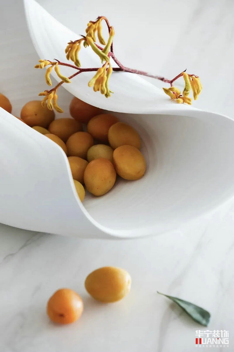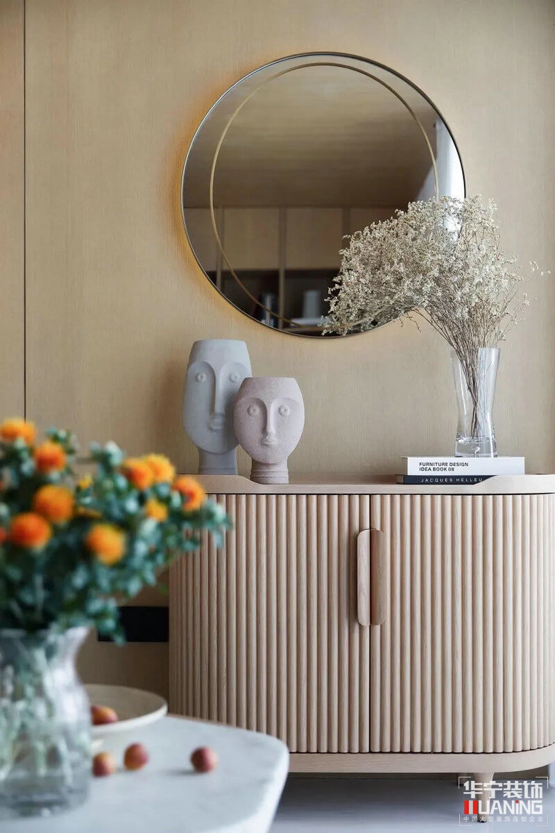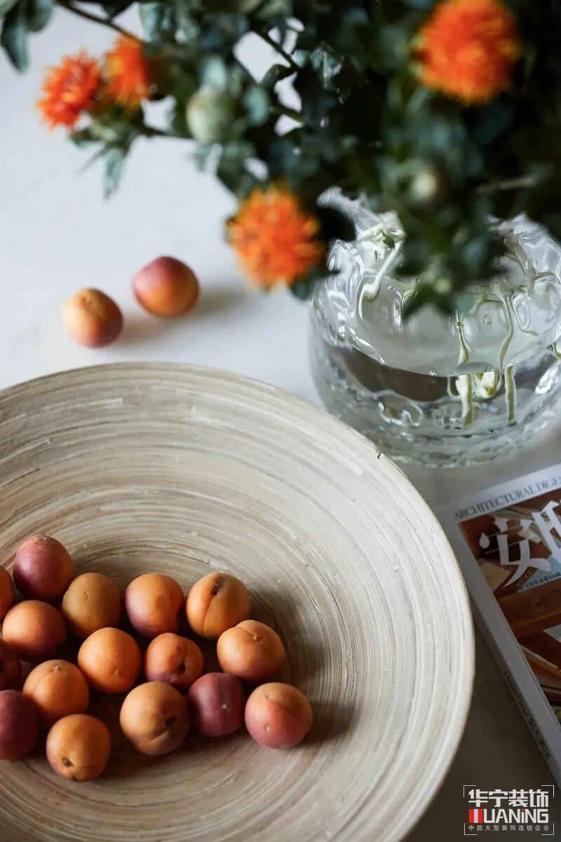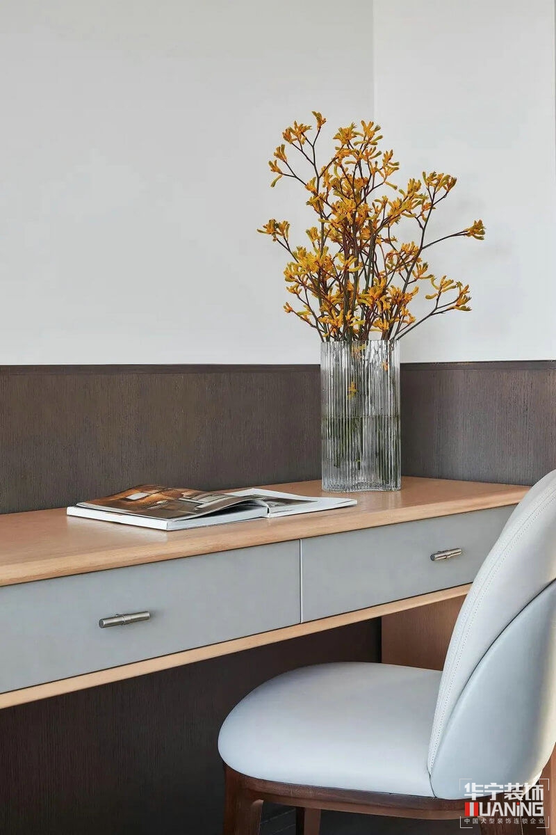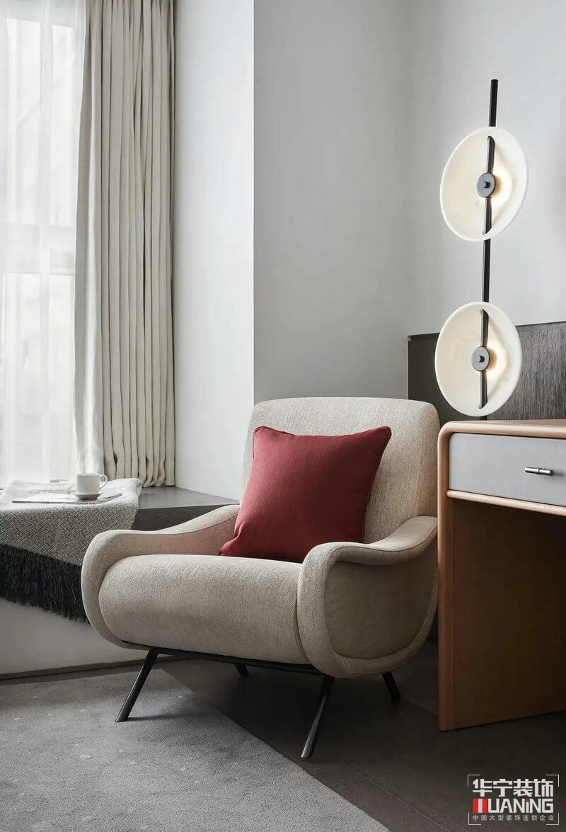 飄窗小景,圓月型簡約燈飾,一把米色單椅搭配中灰色幾何地毯,隨處可見的精尚與優(yōu)雅氣質(zhì)悄然流淌。一簇明黃色花束的點(diǎn)綴,為靜謐的空間增加了明媚如春的靈動(dòng)美好。