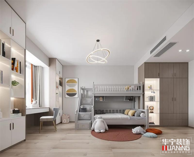 次臥以現(xiàn)代大方的空間為主,沒(méi)有什么復(fù)雜的設(shè)計(jì),也沒(méi)有什么繁雜的色彩,平平淡淡的空間,也是充滿(mǎn)安靜優(yōu)雅的檔次感。營(yíng)造出意味深長(zhǎng)且充分親近自然又足夠舒適令人愉悅的居住環(huán)境。 兒童房